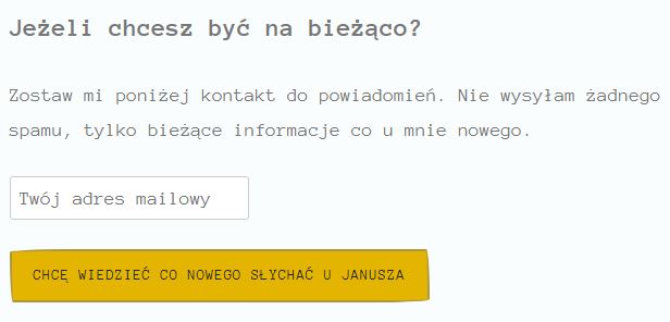W związku z powyższym ja nie jestem zwolennikiem nagabywania czytelników na każdym kroku, zostaw kontakt, wpisz maila. Moje zaproszenie do subskrypcji wygląda następująco:
