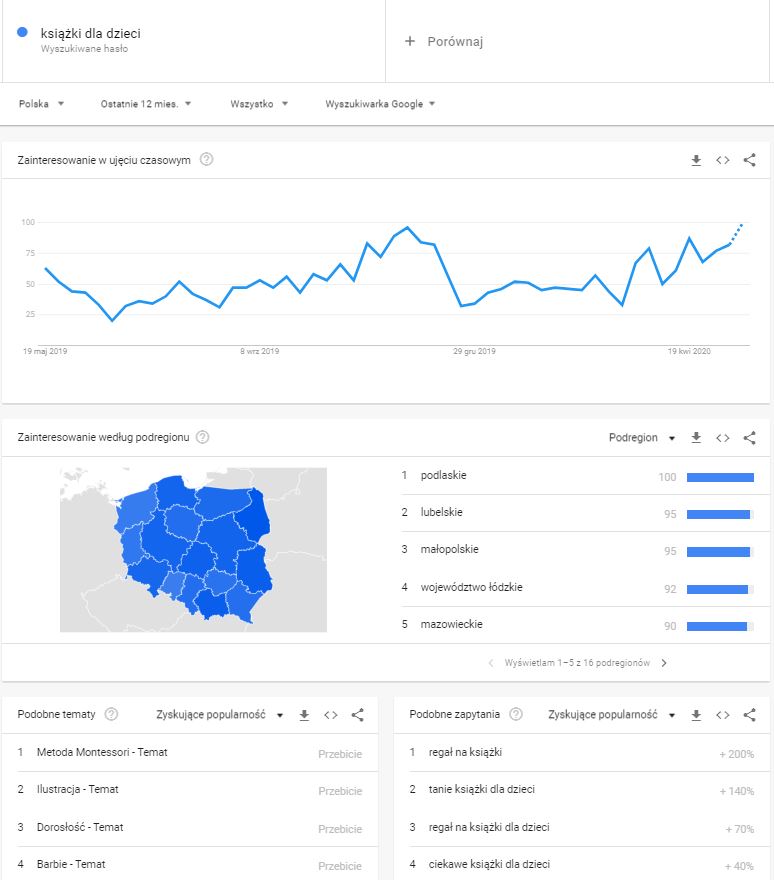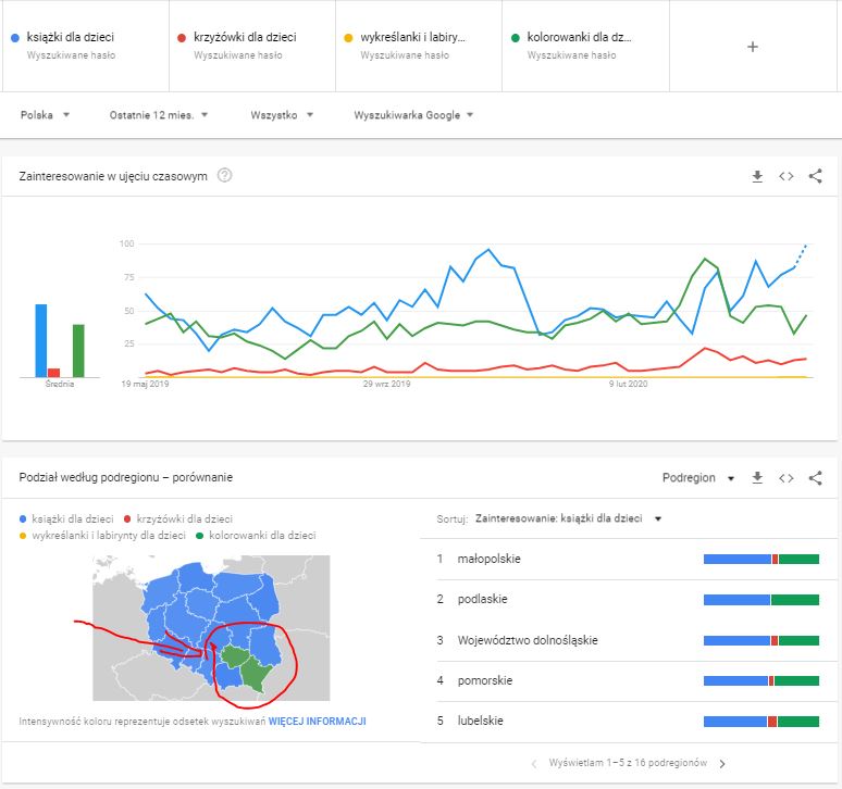 W ten właśnie sposób, możesz skorzystać z całkowicie darmowego narzędzia od wujka Googla, żeby dowiedzieć się czy Twój pomysł na biznes ma klientów w internecie i będąc dociekliwym, możesz określić ich ogólny zarys. Skąd są, jakie województwo więcej szczegółów czego szukają itd.